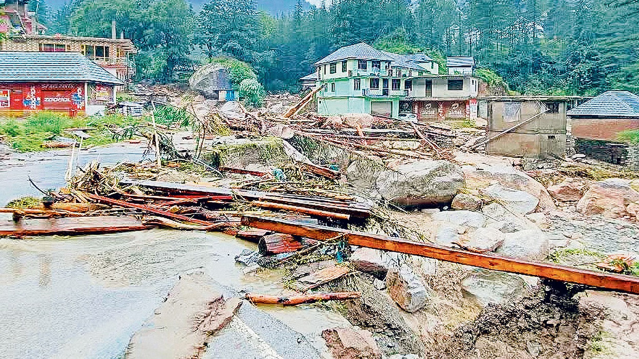 हिमाचल में बाढ़ ने हर तरफ कोहराम मचा रखा है। मंडी जिले में सोमवार रात को आसमान से बरसी आफत ने लोगों को नींद में ही ऐसा दर्द दिया कि देखते ही देखते सब कुछ सैलाब में बह गया । तेज वर्षा व बादल फटने से नदी-नालों के कहर से लोग वर्षों तक उबर नहीं पाएंगे। आंखों में आंसू और जान बचाने की जद्दोजहद में लोग अपना सब कुछ छोड़ घरों से भागने पर मजबूर हो गए। प्रदेश में 17 जगह बादल फटे। जिनमे सबसे अधिक 15 बादल मंडी जिले में फटे। जबकि कुल्लू और किन्नौर जिले में एक-एक जगह बादल फटे। बादल फटने, लगातार बारिश और भूस्खलन से सबसे ज्यादा नुकसान जिला मंडी में हुआ है। कई घर मलबे में बदल गए और ब्यास नदी का पानी रिहायशी इलाकों में घुसने से चारों तरफ अफरातफरी मच गई। मंडी में 16 लोगों समेत पूरे प्रदेश में 18 लोगो की जान चली गई है। इसके अलावा,33 लोग अभी भी लापता हैं और दर्जनों लोग घायल हुए हैं। राहत और बचाव दल ने 332 लोगों को सुरक्षित बाहर निकाला है,जिससे उनकी जान बच सकी। अकेले मंडी जिले में 24 घर और 12 गोशालाएं जमींदोज हो गई हैं। 30 पशुओं की मौत हो गई है। कुकलाह के समीप पटीकरी प्रोजेक्ट बह गया है। कई पुल ध्वस्त हो गए हैं।