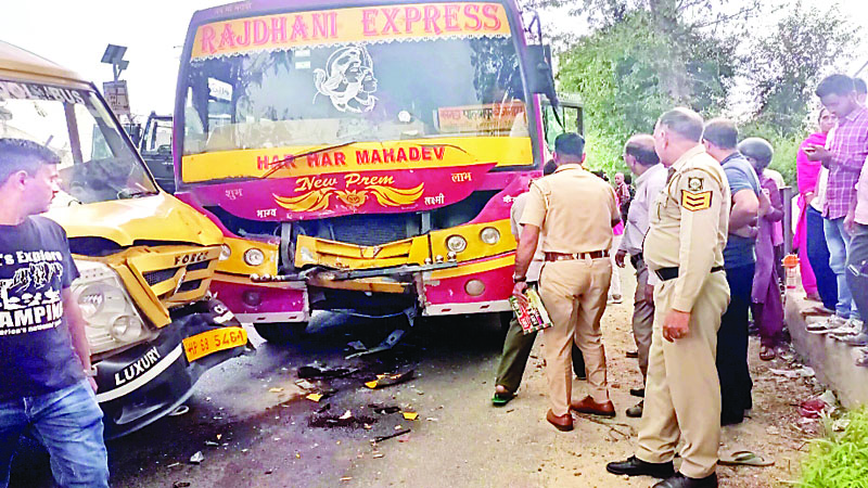 नेशनल हाईवे-154 में दोपहर 3 बजे भट्टूं रेलवे फाटक के पास मुख्य सडक़ मार्ग पर एक निजी और स्कूली बस की जोरदार टक्कर हो गई। इस हादसे में स्कूल बस में सवार 17 बच्चे और निजी बस की सवारियां बाल-बाल बचीं। हालांकि कुछ बच्चों और लोगों को मामूली से खरोचे आईं हैं जिन्हें तुरंत लोगों के सहयोग से इलाज के लिए अस्पताल ले जाया गया है। लेकिन बड़ा हादसा होने से टल गया। बता दें कि हादसे के बाद बस चालक बस और परिचालक भाग गए। हालांकि बाद में वे पुलिस के पास पेश हुए। जानकारी के अनुसार निजी बस कांगड़ा से पालमपुर की तरफ जा रही थी। ऐसे में भट्टूं रेलवे फाटक के पास स्कूली बच्चों की बस बच्चों को घर छोडऩे के लिए जा रही थी कि जैसे ही स्कूल बस चालक ने लिंक रोड पर टर्न किया। तो ऐसे में सामने से आ रही निजी बस अनियंत्रित होकर स्कूल बस से टकरा गई। टक्कर इतनी जोरदार थी कि स्कूल बस में बैठे बच्चे एकदम से डर गए। वहीं,पुलिस ने मामला दर्ज कर जांच शुरू कर दी है। वहीं,घटना का पता चलते बच्चों के अभिभावक भी मौके पर पहुंचे,जिनके चेहरे पर भय का माहौल साफ झलक था। इसक बाद वे अपने साथ बच्चों को घर ले गए।